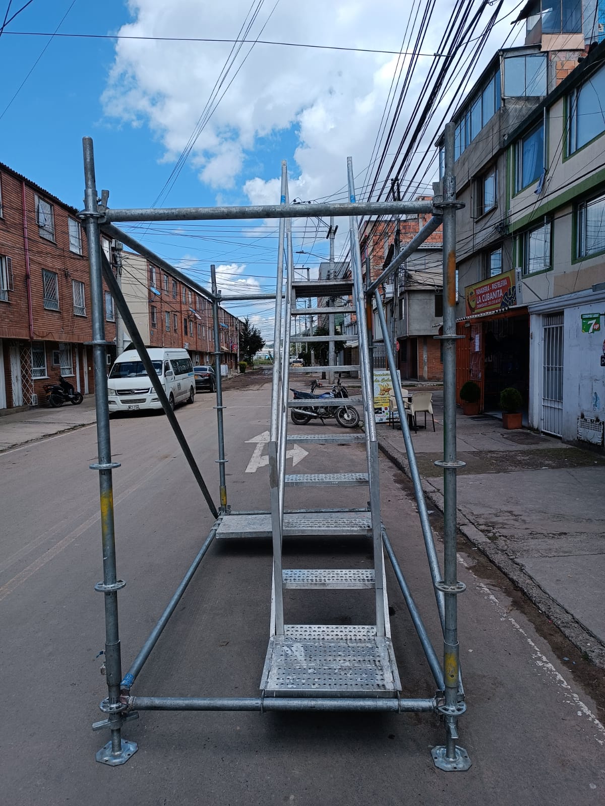 Son andamios en estructura tubular de acero galvanizado. Su uso principalmente en trabajos de fachada, pero como son estructurales pueden ser utilizados también como soporte de formaletas, losas, voladizos, puentes, entre otros.